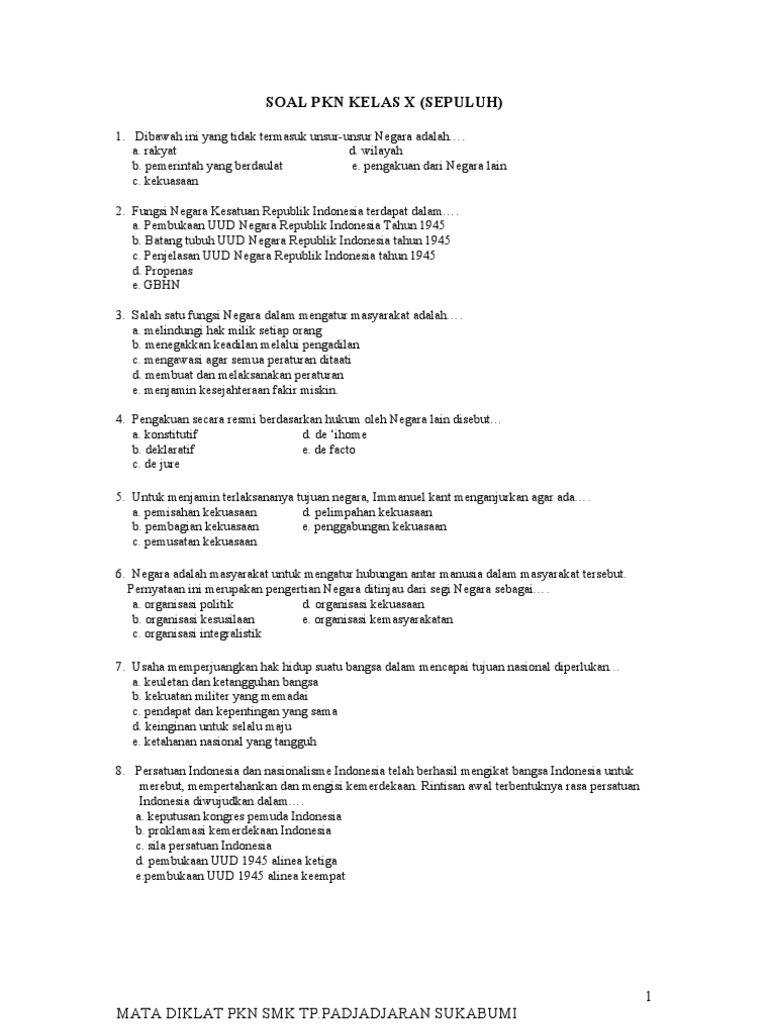 Contoh Soal Pkn Kelas X Semester 2 Pilihan Ganda Dan Kunci Jawabannya