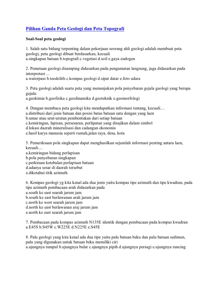 Pilihan Ganda Peta Geologi Dan Peta Topografi