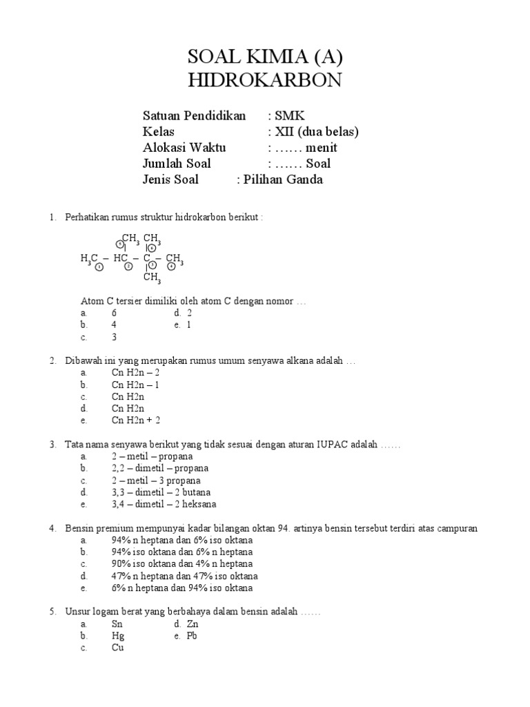 Contoh Soal Pilihan Ganda Tentang Hidrokarbon Dan Jawabannya Contoh Soal Terbaru