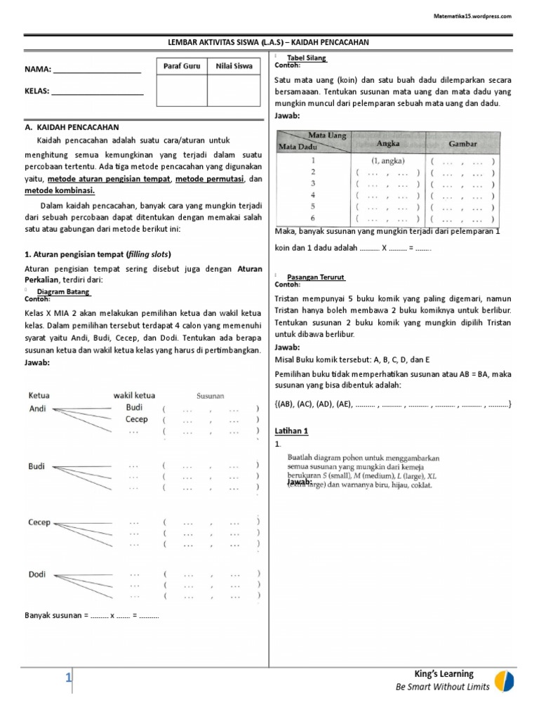 Disebut sebagai pencacahan sebab hasilnya berwujud suatu bilangan cacah. Contoh soal dan pembahasan kaidah pencacahan. Download dan kerjakan soalnya.
