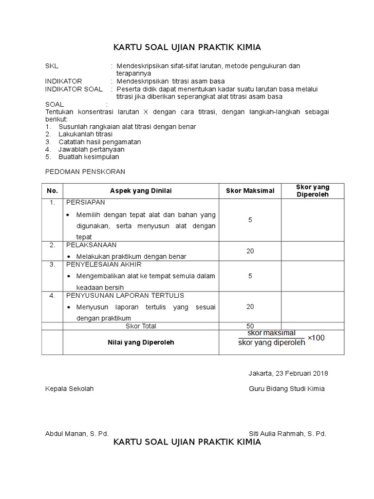 Referensi Contoh Kartu Soal Uraian Praktek Lembar 2 Untuk Administrasi Guru Wali Kelas Guru Kartu Referensi