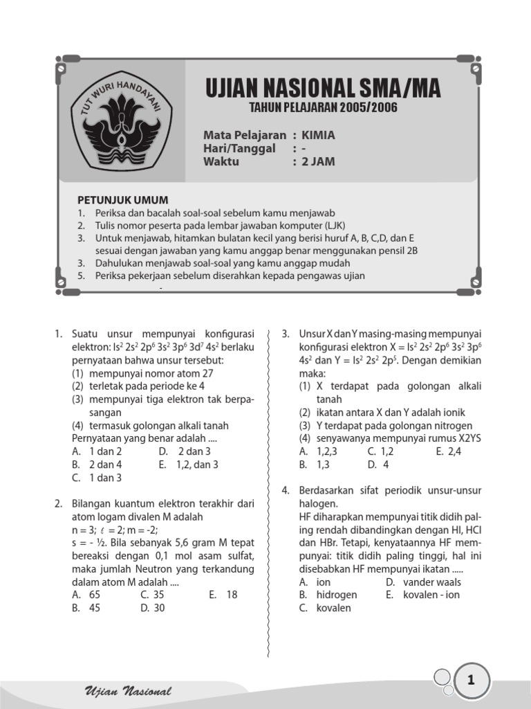 Soal Un Kimia Sma Ipa Tahun 2019 Blog Pak Pandani