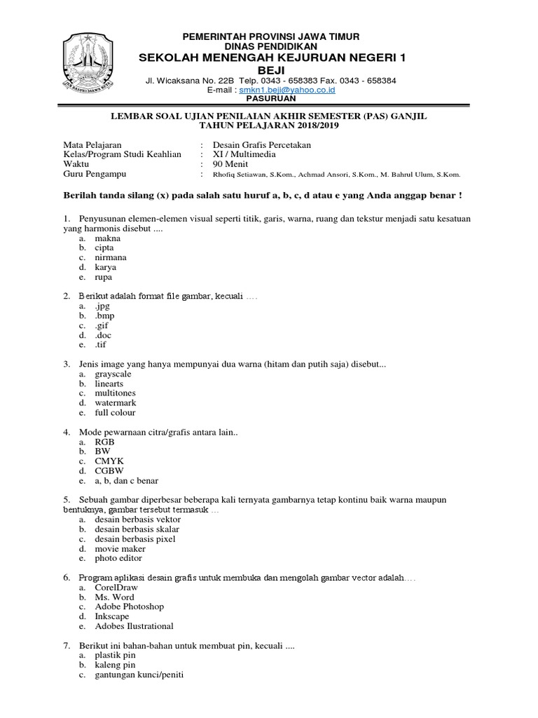 Desain dan grafis 2kata desain berarti. 50 soal un teori kejuruan multimedia dan kunci jawaban administrasi ngajar. Soal Pilihan Ganda dan Jawaban Desain Media Interaktif Kelas XII Multimedia Semester I piter-tws Facebook Twitter Soal Pilihan.